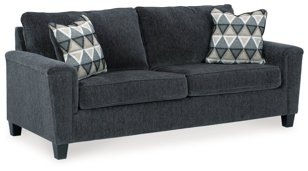 If you’re looking for a smokin’ hot look priced to entice, you’re sure to find this space-conscious, budget-conscious sofa beautifully fits the bill. Covered in a smoke gray chenille upholstery loaded with plush texture, this less-is-more contemporary sofa is dressed to impress with angled side profiling and track armrests wrapped with a layer of pillowy softness for that little something extra. Crisp and clean, the 2-over-2 cushion styling adds up to one sensational look.