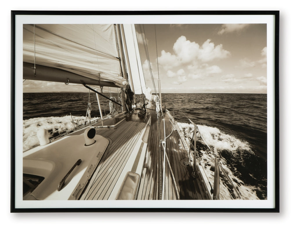Adventure awaits. Capture the feel of salt air and bygone charm with this wall art. A sailboat cuts through the water, immersing you in a classic coastal vibe. The piece's sepia tones recall vintage aesthetics for a delightfully nostalgic feel.