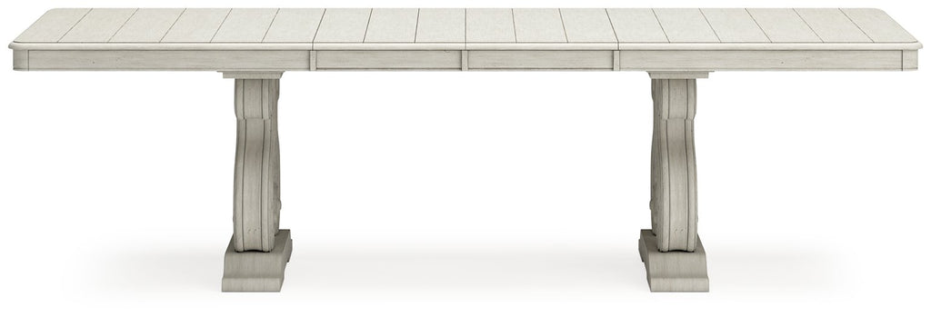 Add a touch of romance to your home with this dining extension table. The painted finish and shapely silhouette are all about easy elegance. Turning the focus on the double sculptural pedestal base, this graceful table adds a dash of upscale luxury to the dining experience.