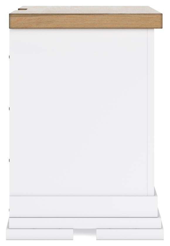 - Stylish two-tone finish featuring butcher block Oak veneer tops and classic white cases.