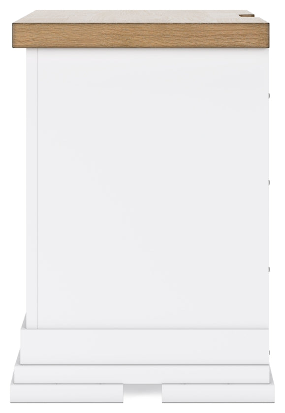 - Stylish two-tone finish featuring butcher block Oak veneer tops and classic white cases.