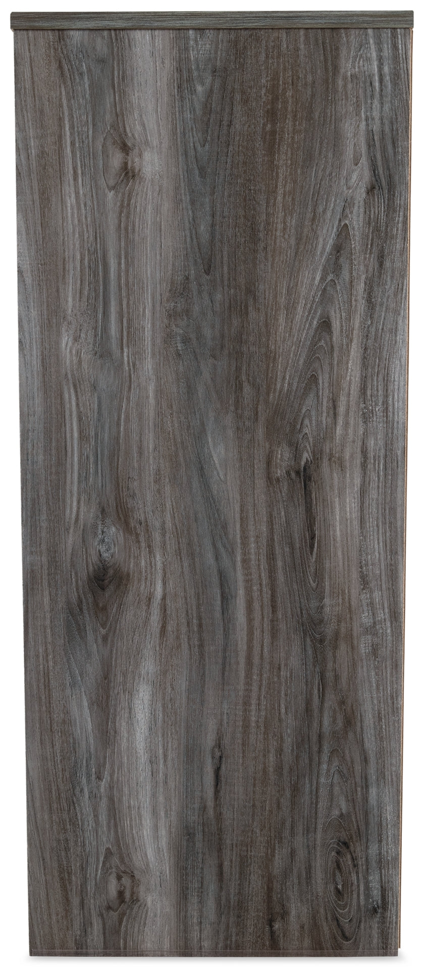 - Smokey gray finish over replicated Oak grain with authentic touch.
