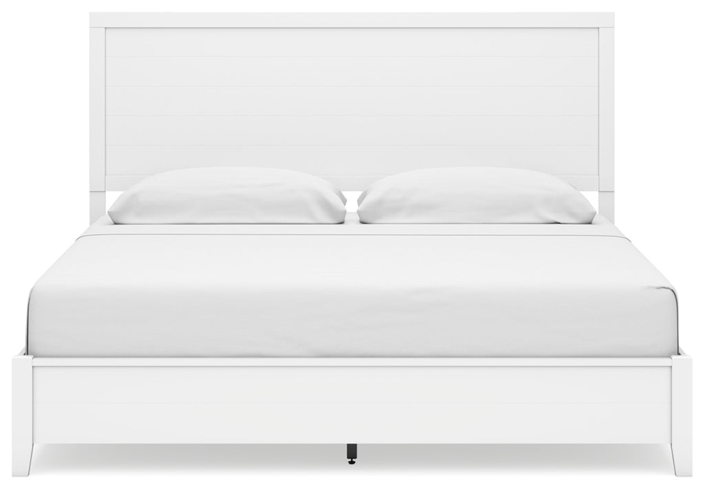 Are you a lover of casual contemporary style? Then this king panel bed is perfect for you. The clean, white finish conveys an easy-breezy sensibility, while planked detailing enhances the design. Durable, sleek and stylish, it graces your space with timeless appeal. Comes with dresser and nightstand.