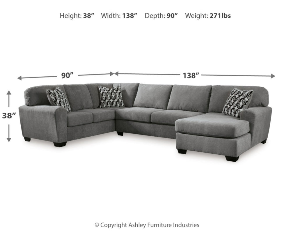 - Overall Dimensions (Inches): 90"W x 137"D x 38"H