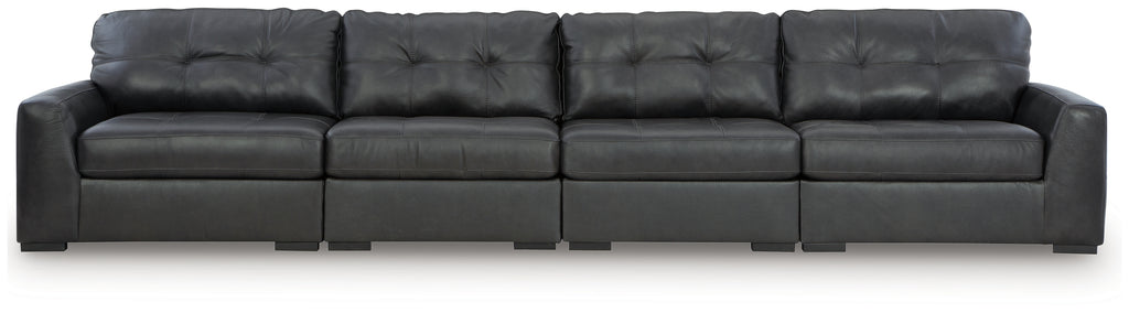 - Includes 4 modular pieces: left-arm facing corner chair, armless chair, wedge and right-arm facing corner chair