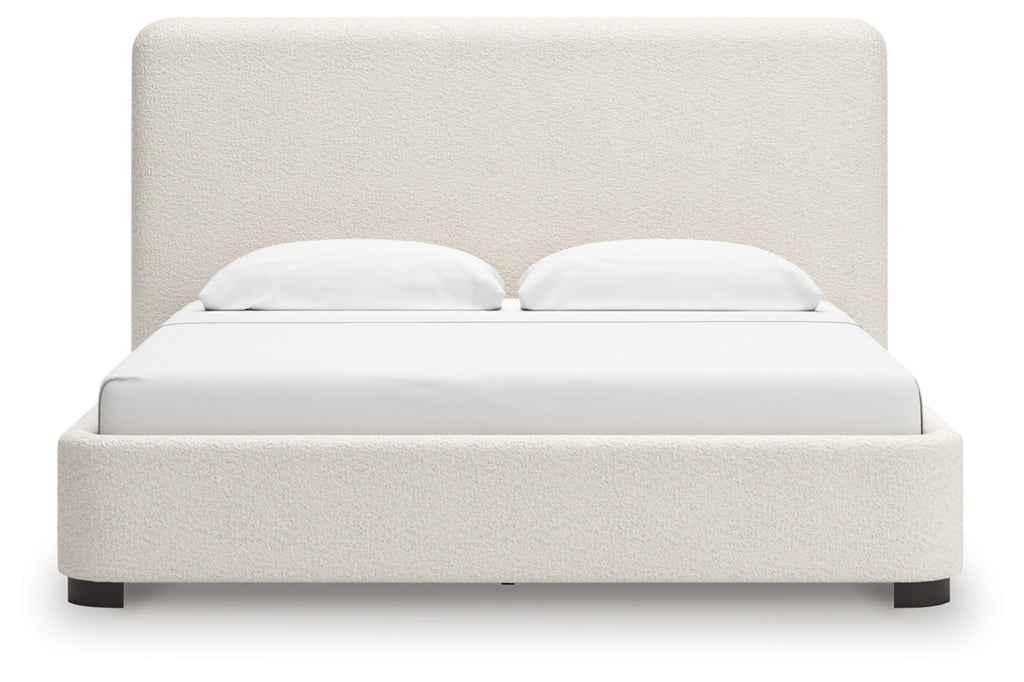 - The upholstered wing bed is constructed with engineered wood frames, foam cushion and a stylish Next-gen Nuvella performance fabric for worry free cleanability.