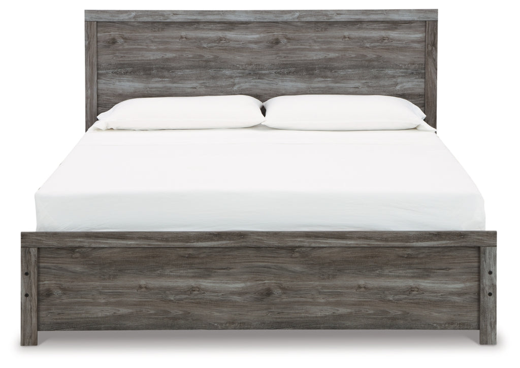 Alluring smoky gray hues create an ambiance that just feels right. This king panel bed has a charming wood-like appeal enriched by neutral tones and a textured look. Its calming presence brings a sense of serenity to your space.