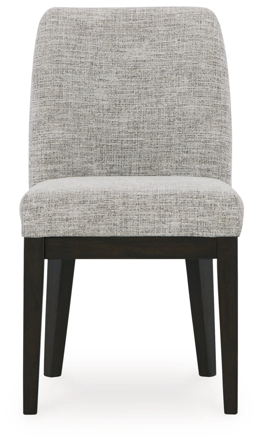 - The side chair is made with solid wood frames, cushioned web seating, with a softly contoured upholstered back design.