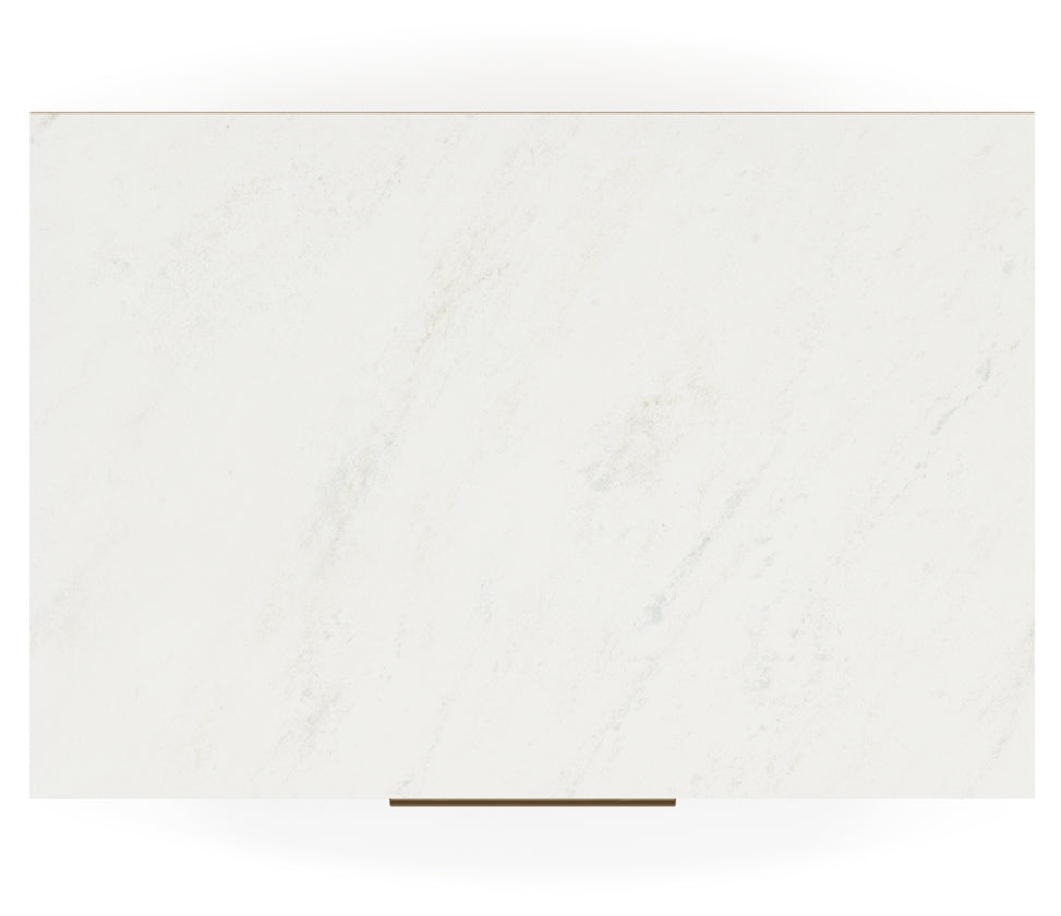 - Matte black finish with subtle replicated wood grain accented with a replicated white marble top.