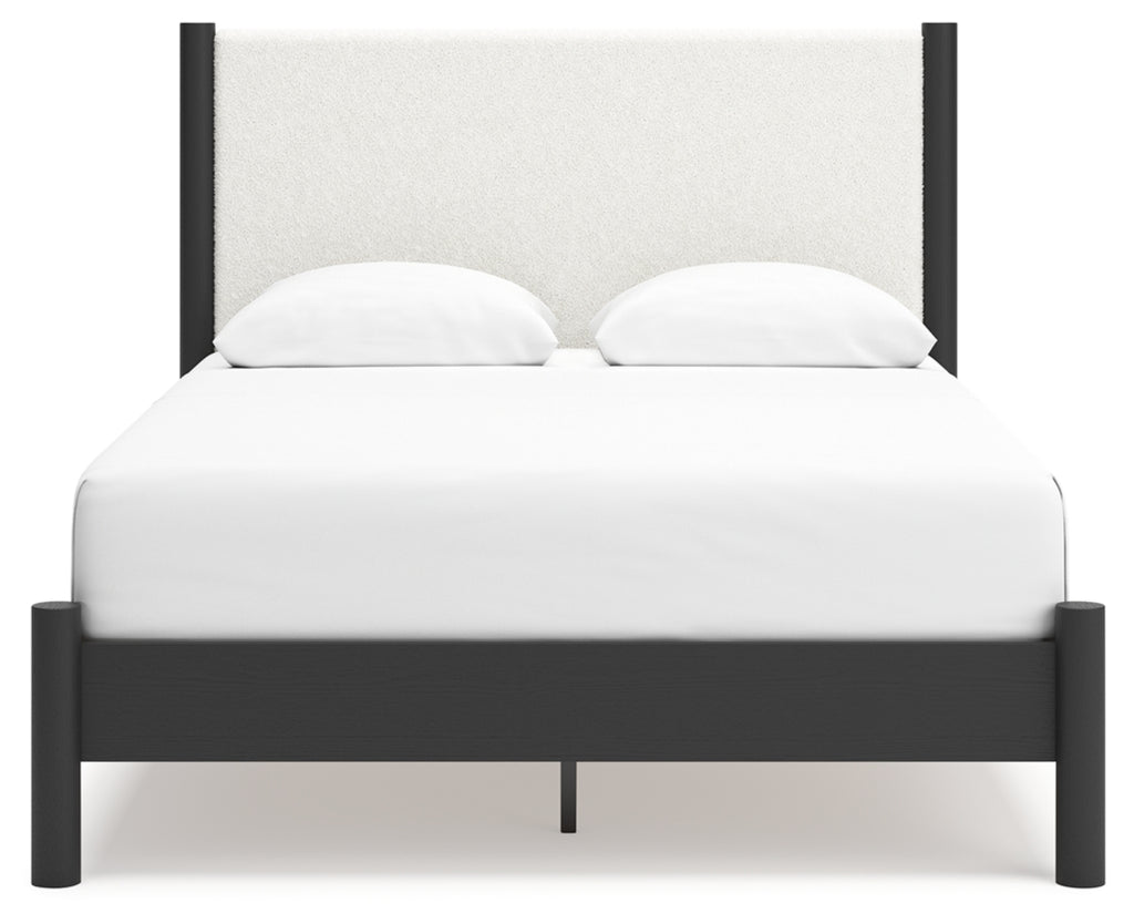 - Item Name: Cadmori Queen Upholstered Panel Bed, Dresser and Mirror