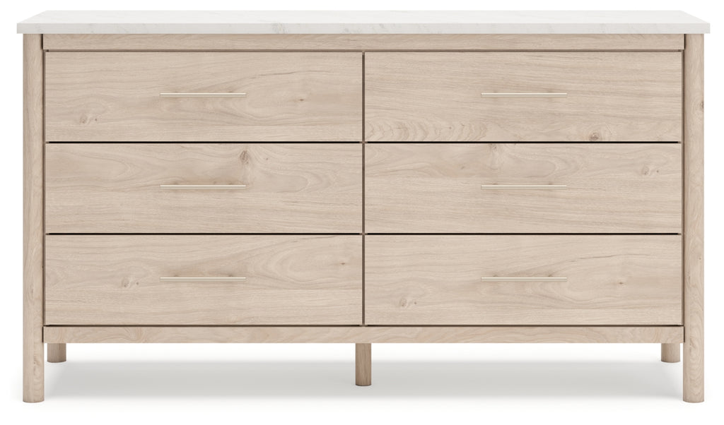 - Item Name: Cadmori Queen Upholstered Panel Bed, Dresser and Nightstand