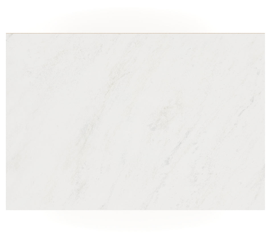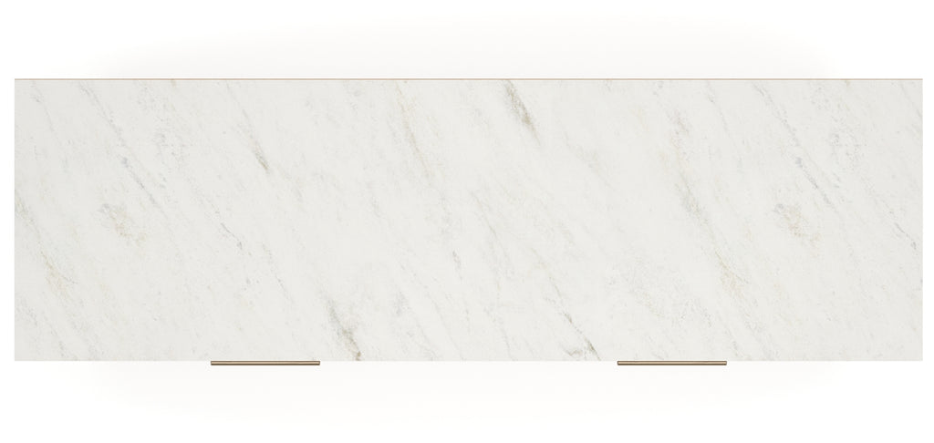 - Smooth, light finish with replicated oak grain accented with a replicated white marble top.
