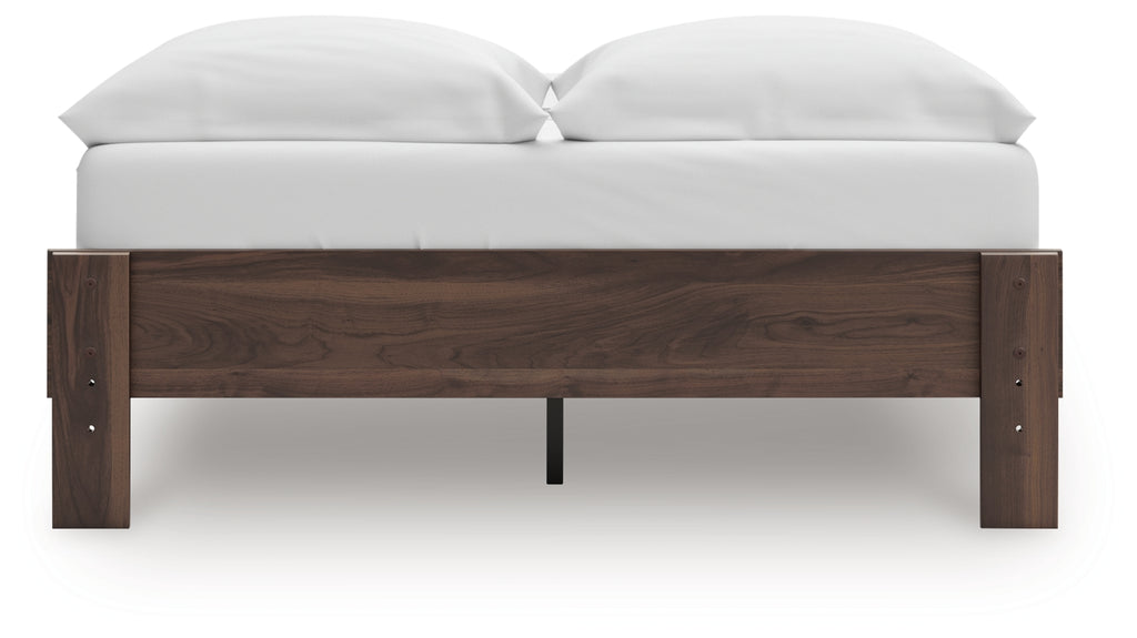 At the intersection of classic cool and chic sophistication you’ll find this full platform bed. The rich brown finish over replicated walnut wood grain offers an authentic touch that plays well any way you style it. Minimal yet elegant in its design, this bed keeps your home decor grounded while elevating your modern style.