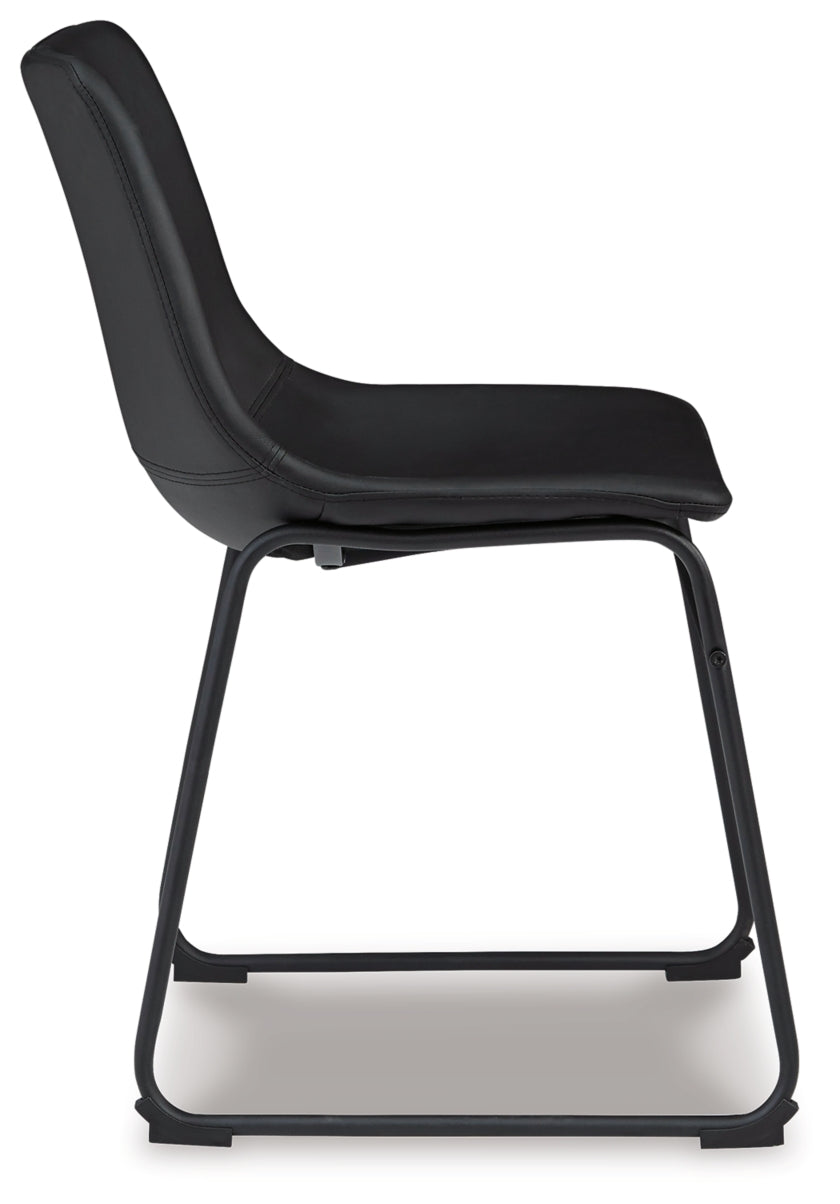 - D372-06/624/630 chair has a black tubular metal frame with contoured bucket seat upholstered in a French black colored faux leather.