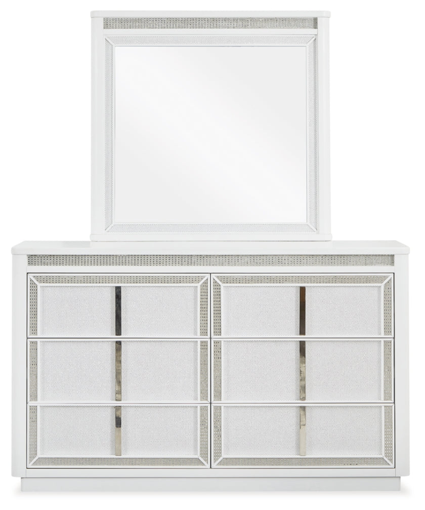 - Item Name: Chalanna Queen Upholstered Storage Bed, Dresser and Mirror