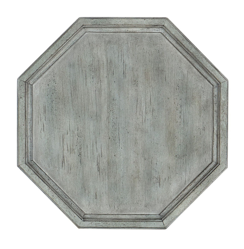 Capturing the vintage charm of the coastal South, the Charleston Side Table has an octagonal shape, eight twist legs, one fixed shelf, decorative fretwork trim and a raised molding edge to create a tray-top effect. Crafted of Cherry Veneers, it is finished in the rich, aged patina that includes subtle distressing and exemplifies the heirloom nature of the Charleston Collection.