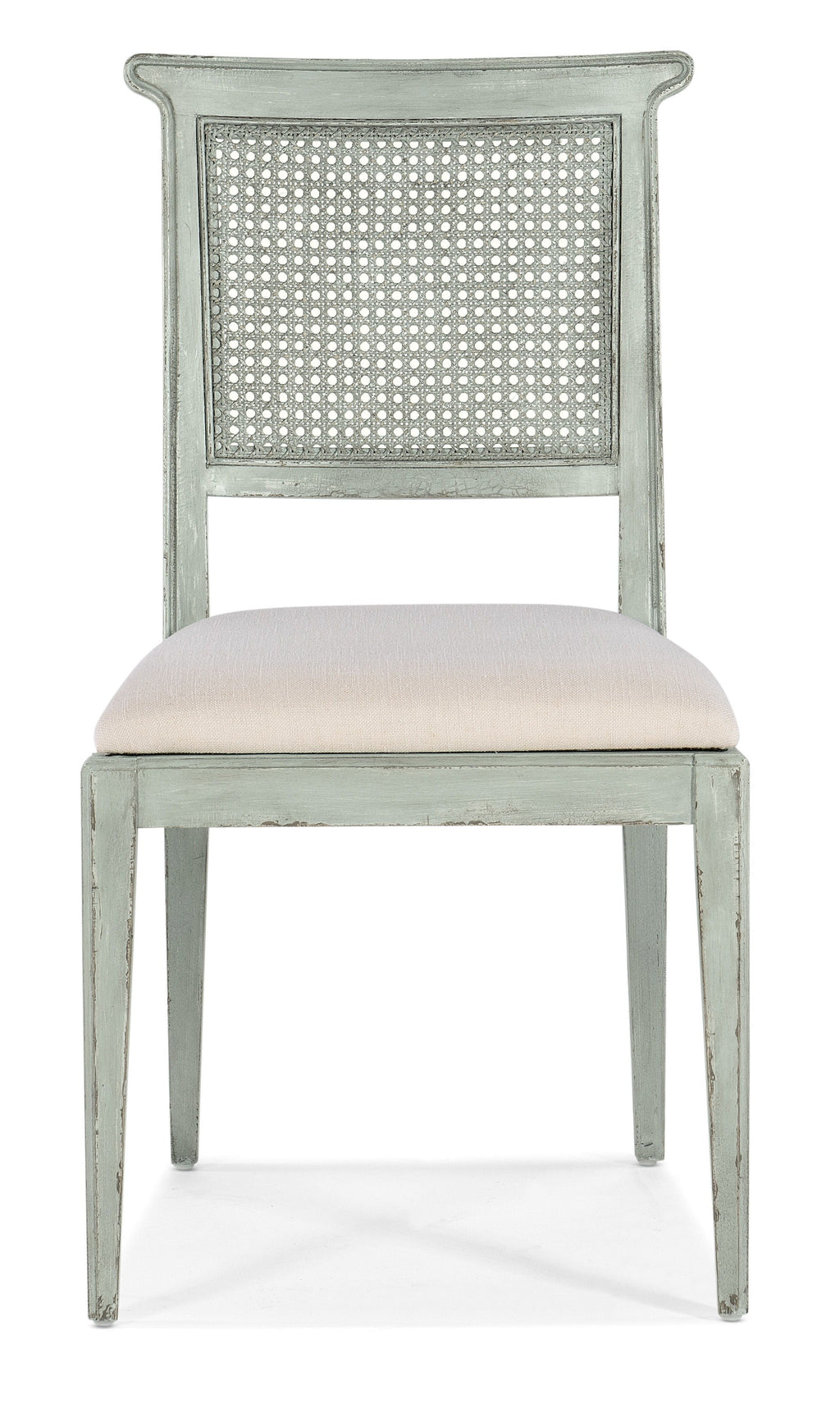Inspired by the tropical craftsmanship of the West Indies and the woven cane accents of classic British and Dutch Colonial design, the Charleston Upholstered Seat Side Chair has an oyster-colored fabric seat and a cane back. The color is the result of the natural patina formed when copper is exposed to air and seawater. This weathered green color represents years of Low Country heat and moisture degrading the pure pigment color, creating a truly venerable aesthetic.