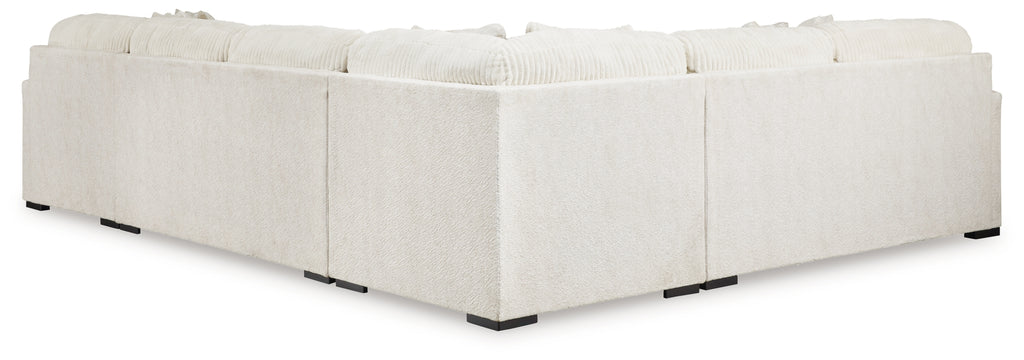 - Includes 4 pieces: right-arm facing corner chaise, wedge, armless loveseat and left-arm facing sofa