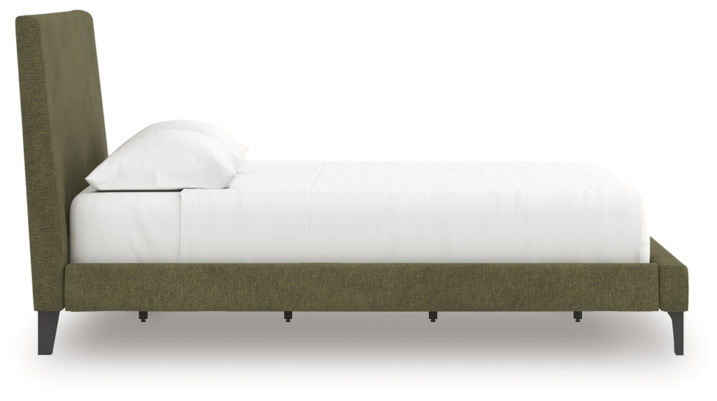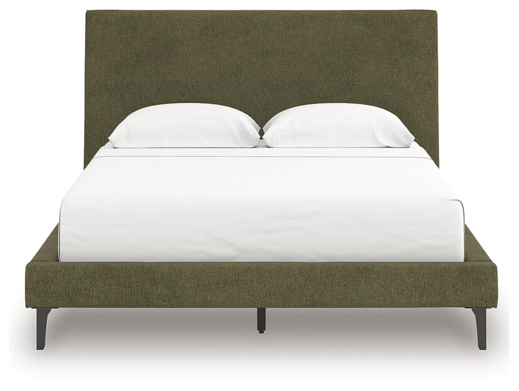 Nostalgic style, retooled for today’s trends. This queen upholstered bed puts an elevated twist on mod aesthetics. Its chic sage green hue reflects the mid-century vibes you love, while the low profile incorporates contemporary motifs. Roll slats round out the design with added convenience, eliminating the need for a box spring. With this bed, you can build your bedroom into a modern haven with a touch of retro-cool flair.