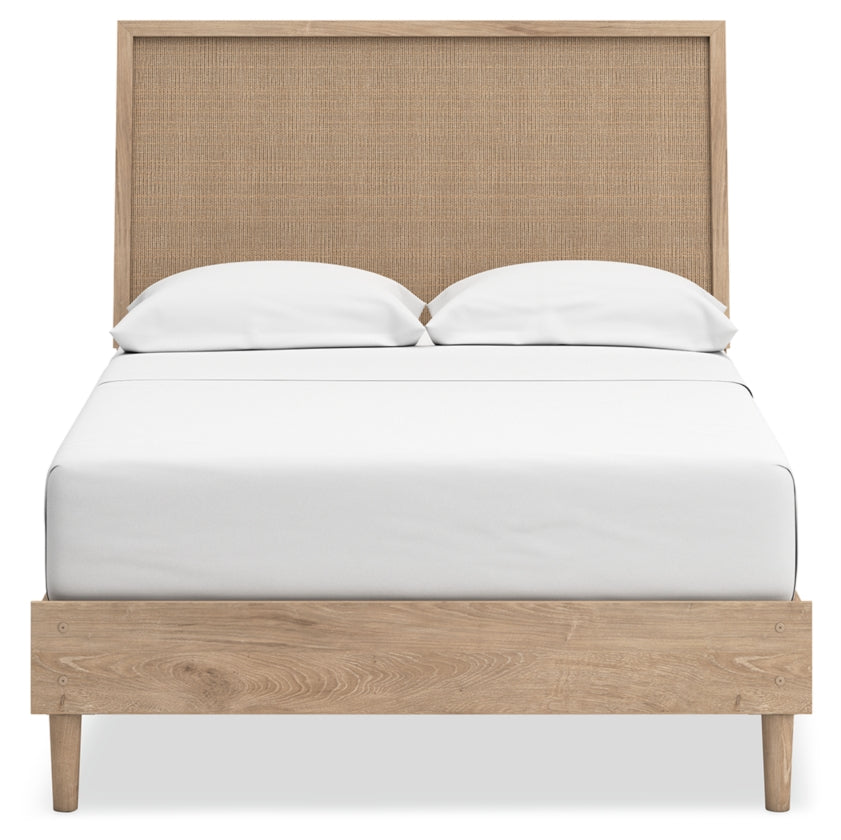 Clean-lined and contemporary—but far from stark—this queen panel bed is a fresh style awakening. Pairing a light finish with replicated oak grain and textured beige details that replicate the look of cane, its mixed materials bring a naturally versatile vibe to your bedroom. Talk about style with added dimension. Its simplicity plays perfectly with the modern aesthetic and calming mood you long for in your tranquil retreat.