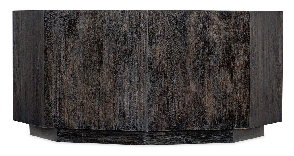 With an exotic smokey finish and stylish octagonal shape, the Honeycomb Cocktail Table is crafted of Acacia Veneers and has a plinth base. The transparent black finish reveals color and grain variances in the wood.