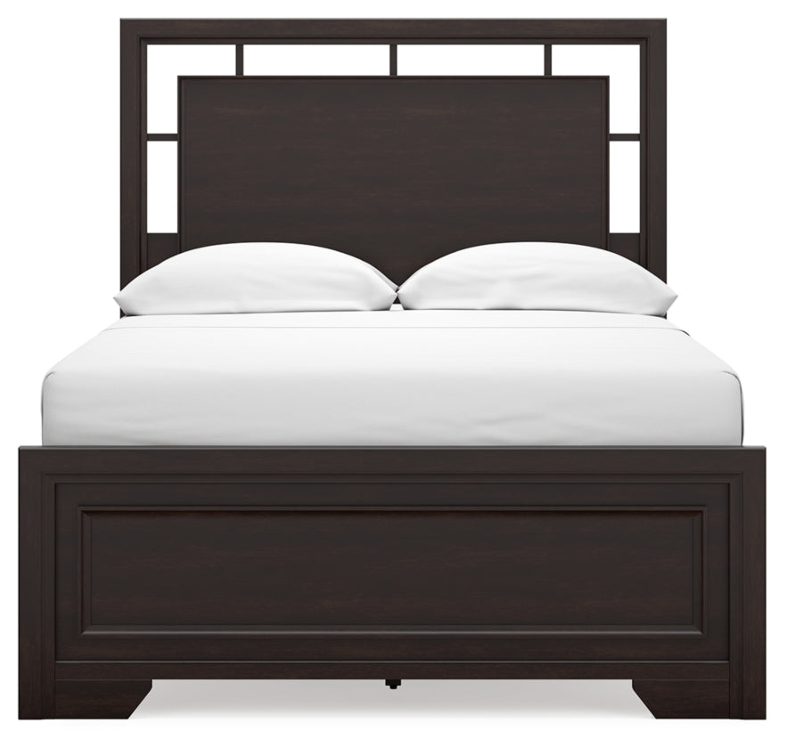 - Panel bed features a floating headboard panel design with a stylish picture framed footboard.