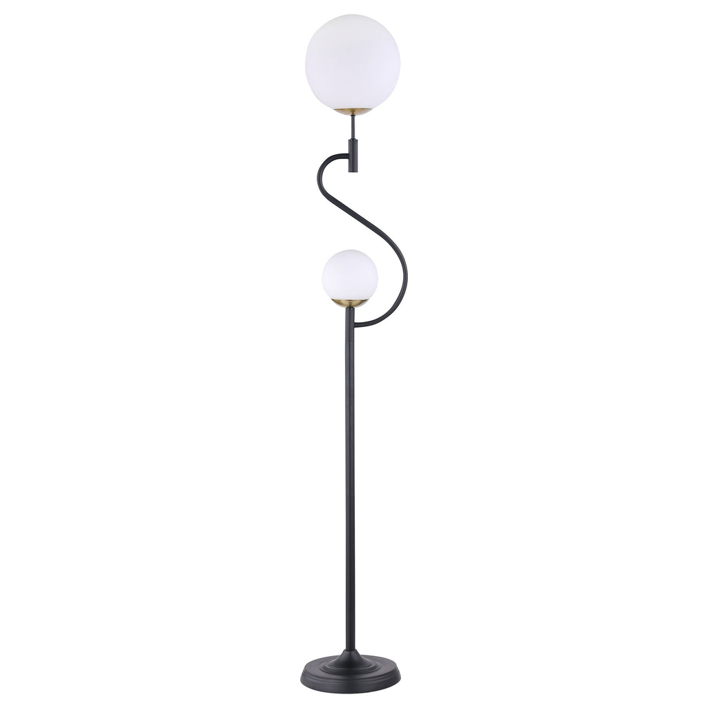 Bubbly personality infuses a modern two-light floor lamp. Perfect for a living area or den, it offers an eye-catching profile with two orb shades made from white glass. They're nestled in an S-curve framework to bring playful energy to your space. The lights each feature an energy efficient 9-watt LED bulb, conserving energy in a modern home. The lamp is operated with a floor switch for streamlined convenience in your home.