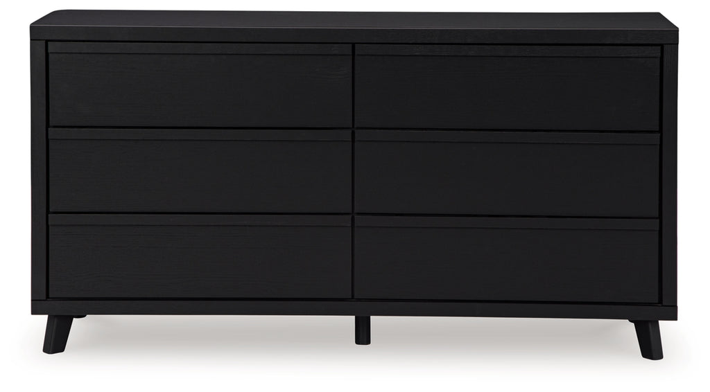 Sophisticated style for the savvy shopper. This panel bed prioritizes affordable, on-trend design. Its subtle replicated texture recalls the natural beauty of wood, highlighting the clean-lined styling. And a matte black finish savvily suits different approaches to modern aesthetics. Mix and match with light and bright hues, or pair with other dark tones for a moody look. Matching dresser and 2 nightstands complete the look.