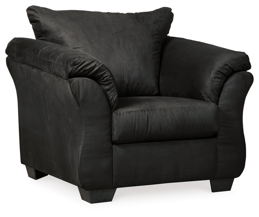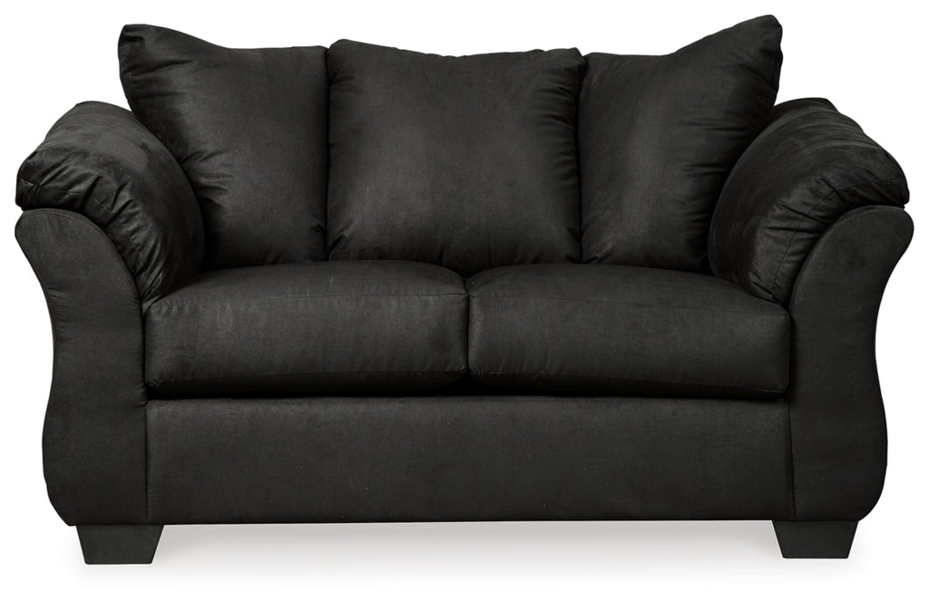 Talk about fine lines and great curves. That’s the beauty of this standout loveseat and chair set—made to suit your appreciation for clean, contemporary style. A striking flared frame, comfy pillow top armrests and an ultra-soft upholstery that holds up to everyday living complete this fashion statement.