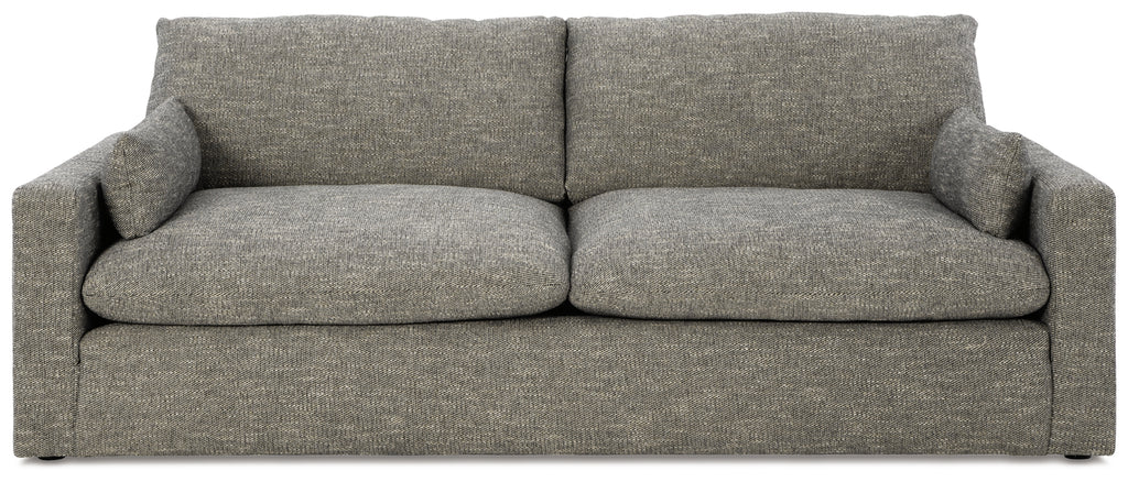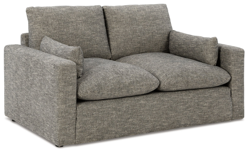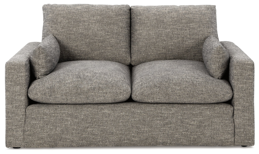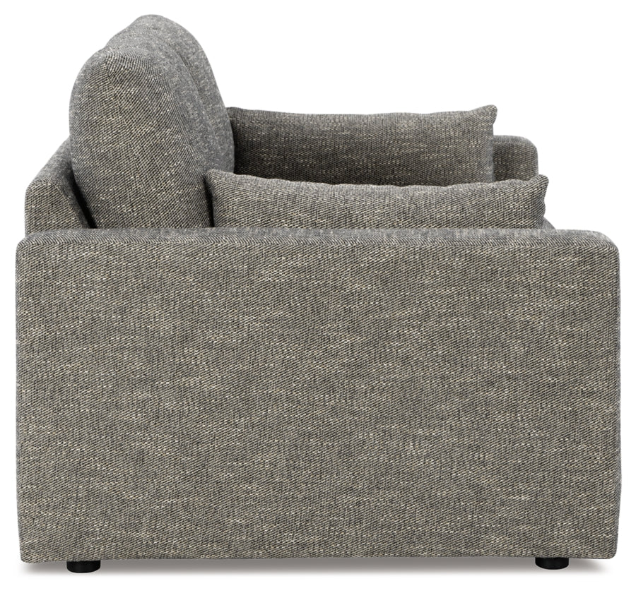 On the days when rest and relaxation seem out of reach, this sofa provides a positively plush seating experience. Its feather-fiber blend cushions invite you to float away in complete comfort. Striking granite-hued upholstery and a streamlined frame grant this cozy piece a look well-suited to contemporary spaces. Loveseat, oversized chair and ottoman included.