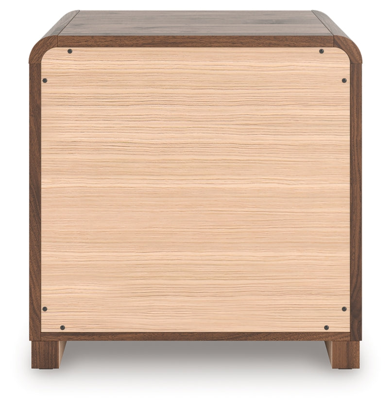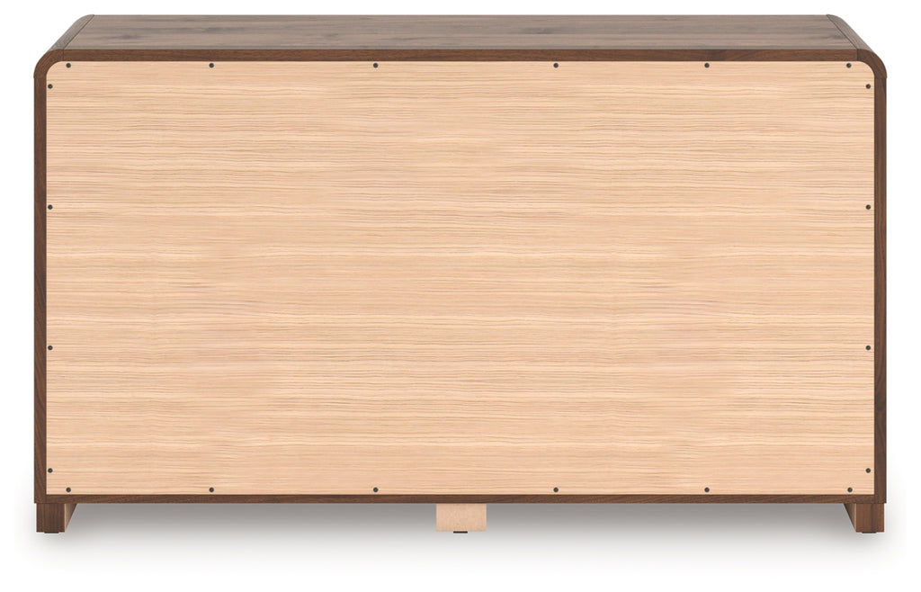 Grace your restful retreat with an added dose of refinement. This bedroom package showcases a stunning rich brown wood tone, with sleek drawer pulls for an added layer of luxury. Rounded frames and tops soften the silhouettes, elevating the overall look of the set. It’s curated, contemporary and utterly chic.