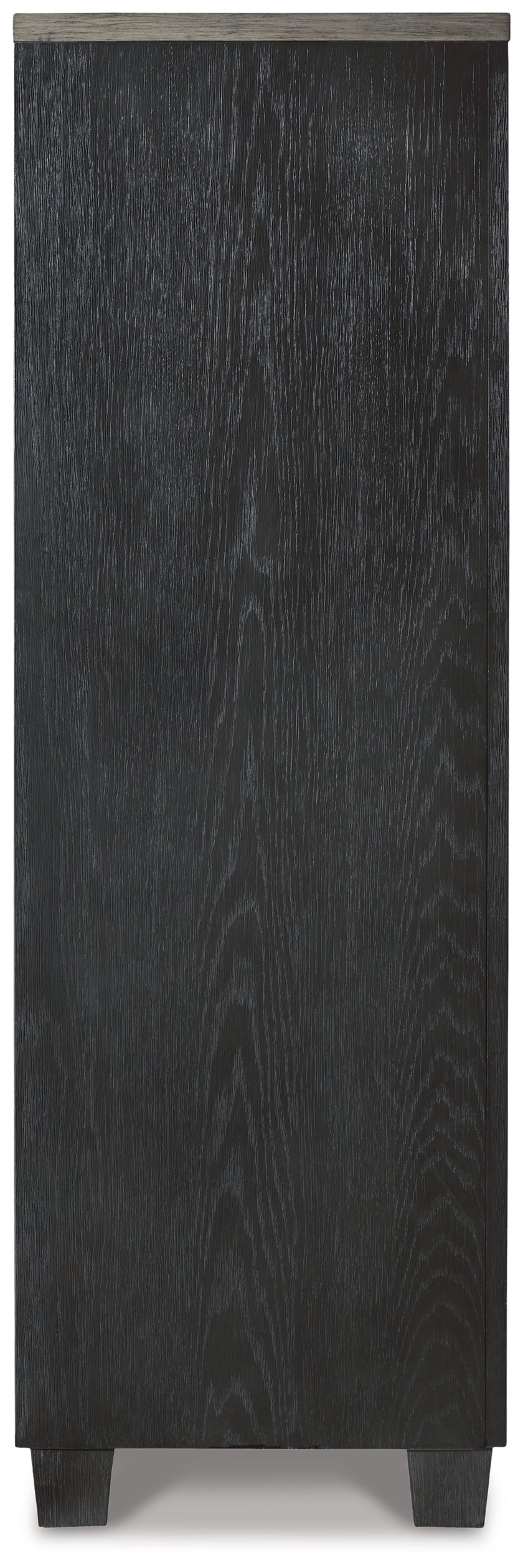 - Two-tone color scheme featuring a rich brushed black main color accented with a beautiful dusty grayish brown wood tone.