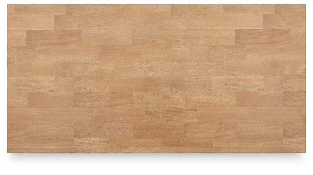 - Two-tone finish contrasts a light natural Mango wood finish with a clean white.