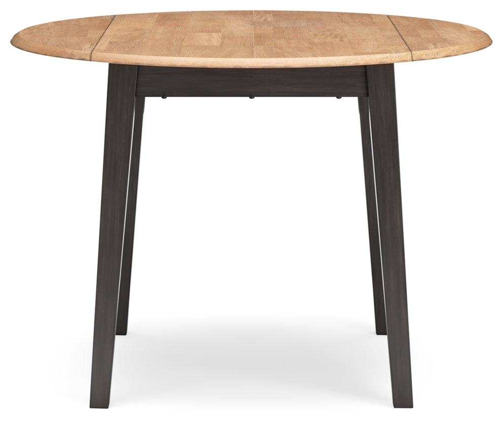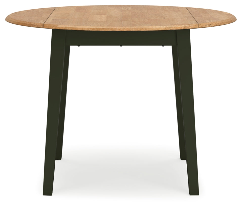 - D401-15 drop-leaf table is 42" round with two 8.5" leaves that allow the table to convert from a space saving 2-person table to a larger 4-person table.