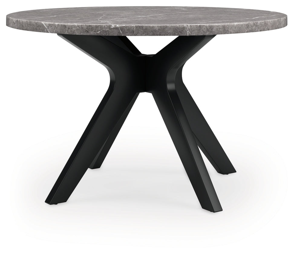 Have a seat at this dining table and chairs package and embrace the feel of casual contemporary design. Its matte black frame and contrasting faux marble top give off a decidedly modern vibe. This is a table that's sure to serve you and your besties well.