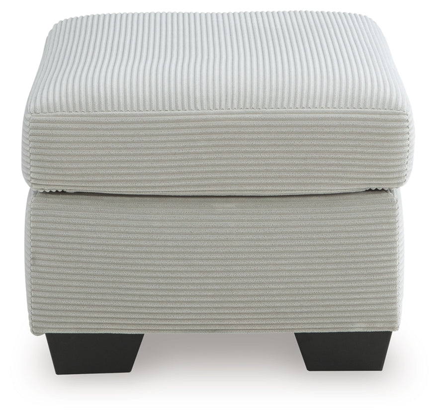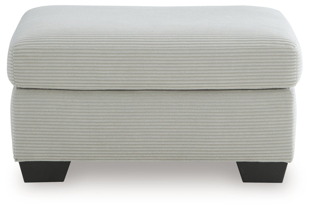 The crisp neutral hue and striking design details of this ottoman create a living room that expertly reflects your modern taste. For irresistibly cool textural appeal, the ultra-soft fabric is enhanced by a small-scale corded look. With a clean-lined silhouette, this ottoman allows you to take a trend-right approach to everyday living.