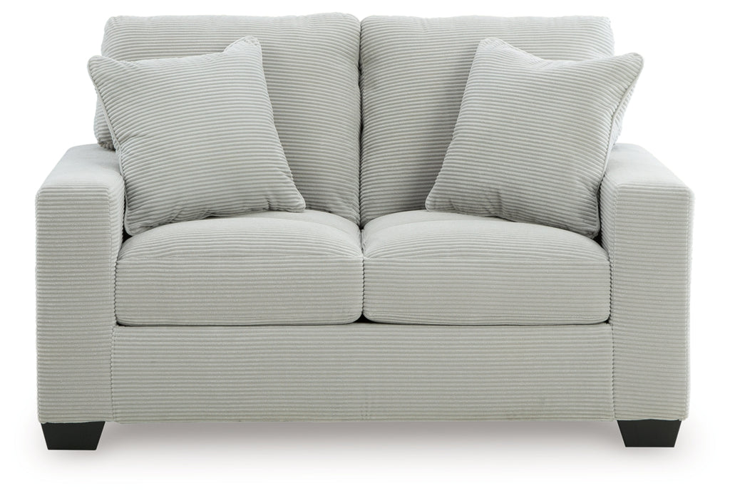 The crisp neutral hue and striking design details of this seating set create a living room that expertly reflects your modern taste. For irresistibly cool textural appeal, the ultra-soft fabric is enhanced by a small-scale corded look. With a clean-lined silhouette, this package allows you to take a trend-right approach to everyday living.