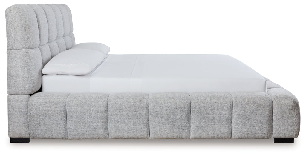A divine merger of casual and contemporary design, this queen upholstered bed is the upgrade you've been dreaming of. Plush, deep pillowed tufting creates an impressive silhouette that's just as comfortable as it is stylish. And the textured light gray Next-Gen Nuvella™ performance fabric is soft and easy to clean. Now there's a bed with staying power.