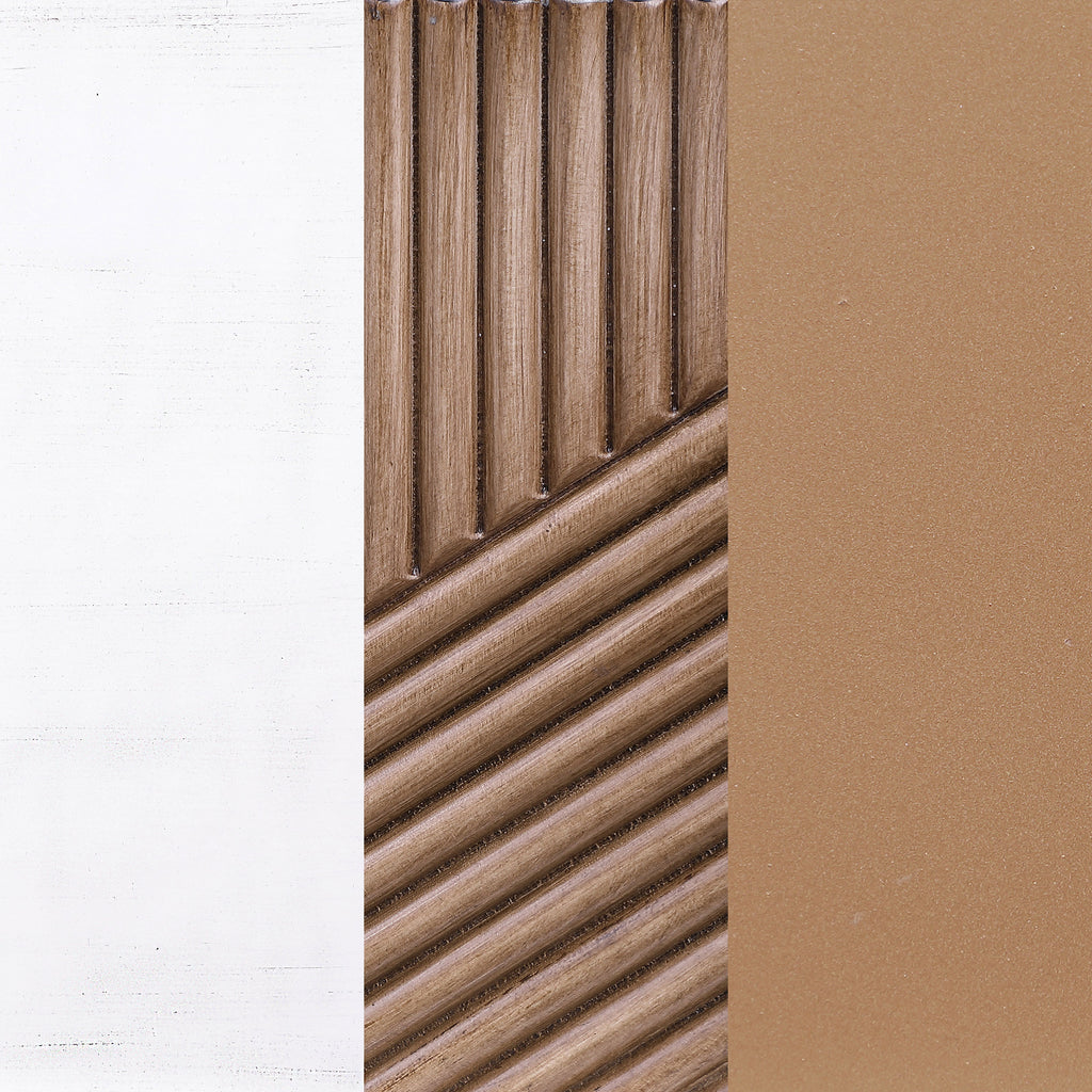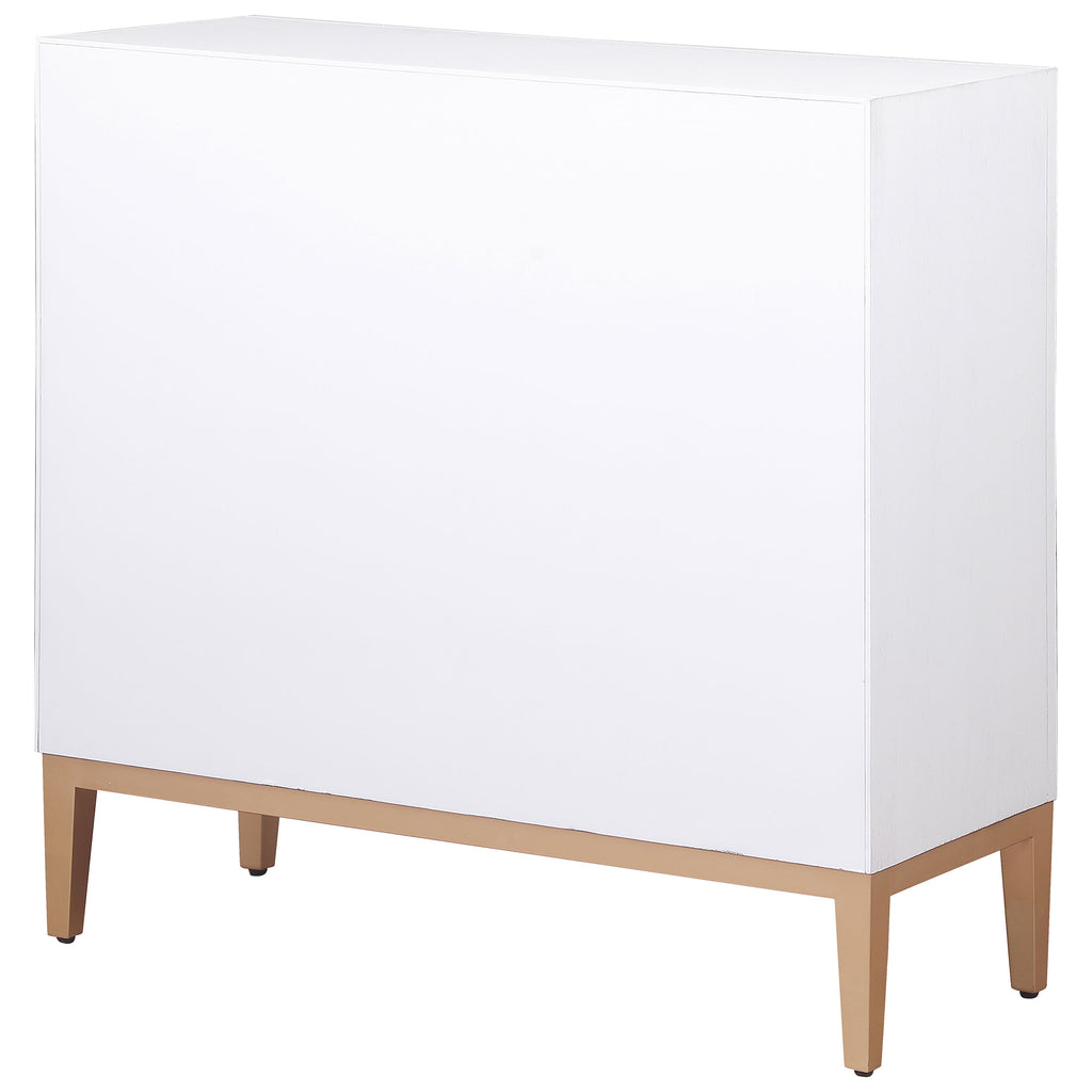 Bring a sense of dimension to any space that needs a boost with this modern accent cabinet. It features two doors that open to reveal an adjustable shelf, perfect for keeping organized in your entry, living area, den or bedroom. Its white finish is crisp and light, with contrasting light brown in linear geometric door designs and its base. Doors add character with textured linework that creates a chic diamond design, perfect for adding artisan character in your space. A matching light brown base and tapering legs create a sense of structure and stability, perfect in your foyer or home office.