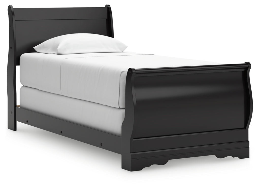This twin sleigh bed is the epitome of traditional decor. Louis Philippe-style moulding dates back to the mid-19th century when furnishings were lavish yet somewhat simple. Luxe finish adds a slightly modern touch. Mattress and foundation/box spring sold separately.