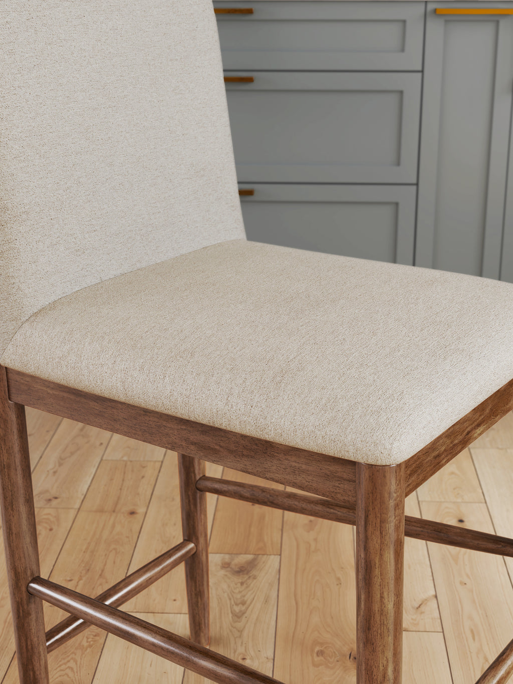 With its back-to-nature sensibility, this counter height bar stool is a natural fit for your well-edited space. A clean-lined design lets the beautifully organic quality and inherent luster of the wood shine through. From its textural upholstery to the refreshing light finish, it’s a piece that makes a statement by being remarkably understated.