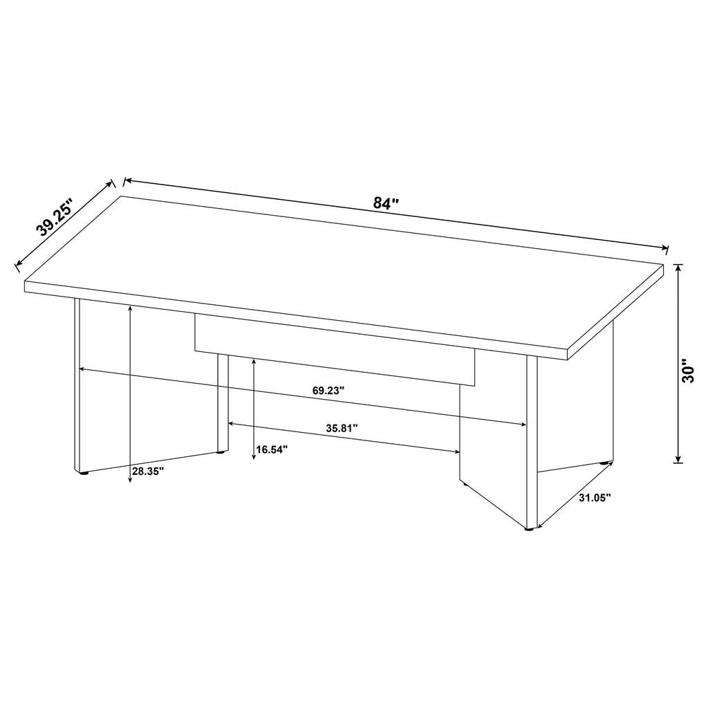 Sit down to delicious meals at a stylish, casual contemporary dining table. The classic rectangular table design features a mango wood-like decorative paper veneer that imparts character with its impressive dimension and texturing. The engaging table design is elevated with a pair of V-shaped pedestals connected with a support plank to create a bold, geometric look to center your kitchen or dining room. The table provides plenty of space for family and friends with its versatile size. Add a ceramic centerpiece to perfectly complement the earthy, organic look.