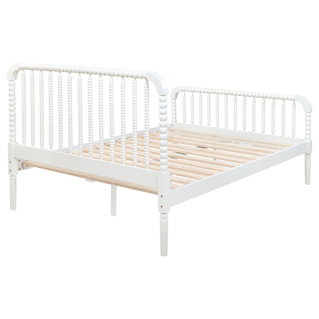 Embrace timeless charm with this Jenny Lind-style platform bed, featuring classic bobbin spindles for a vintage-inspired look. Crafted from solid rubberwood and pine, it offers lasting durability and sturdy support. The gracefully curved headboard and footboard enhance its nostalgic appeal, making it a perfect fit for a guestroom or kids' bedroom. A platform slat base ensures mattress-ready convenience without the need for a box spring, blending traditional design with modern functionality.
