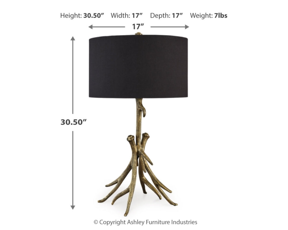 Illuminate your contemporary space with this table lamp set. Finished in an antiqued goldtone, it makes a statement displayed solo, or as a pair flanking your sofa or sectional. A black shade keeps the look right on trend.