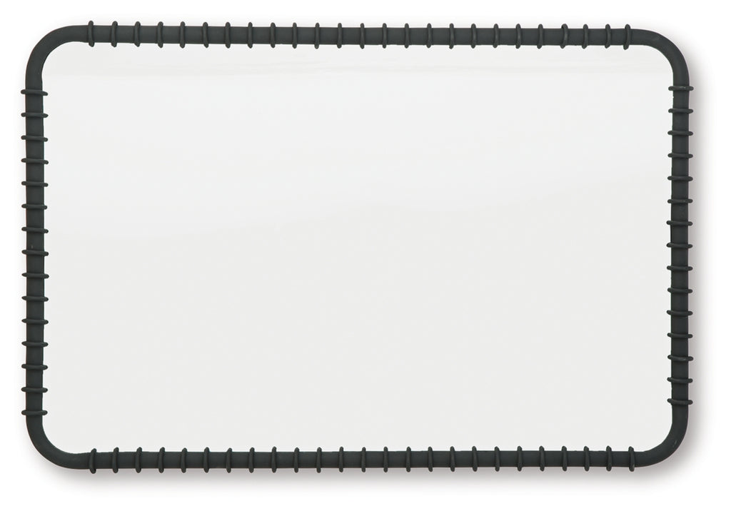 This accent mirror's sleek black finish and ribbed design add a touch of contemporary chic to any room. Its versatile hanging options allow you to display it vertically or horizontally, making it easy to complement your existing decor. The clean lines and simple shape create a modern and minimalist feel, while the substantial frame adds a touch of boldness.