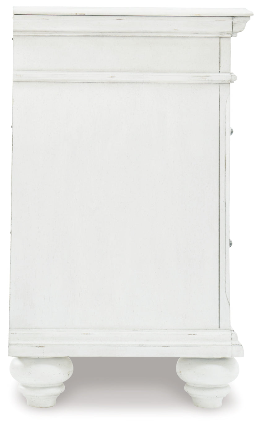 - Dresser features 7 full sized drawers with 2 small scaled accessory drawers.