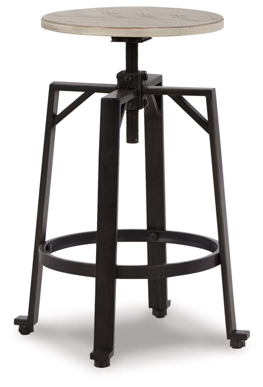 Add a rustic-yet-refined look to your home with this set of 2 two-tone swivel stools. Its distressed whitewash wood seat with black metal frame conveys an inviting farmhouse style. This charmer easily moves from counter to pub height, giving you and your guests the freedom to sit comfortably while adding a casually cool industrial vibe to your table.