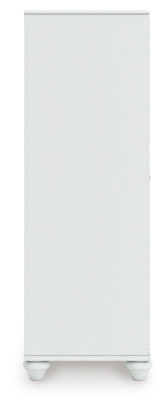 Fit for a princess. This dressing chest’s crisp matte white finish pairs with charming elements like a mirrored door, bun feet and crystal knobs—the perfect crowning touches for your girly girl. Hidden shelves keep toys within easy reach, making your little one feel like royalty.