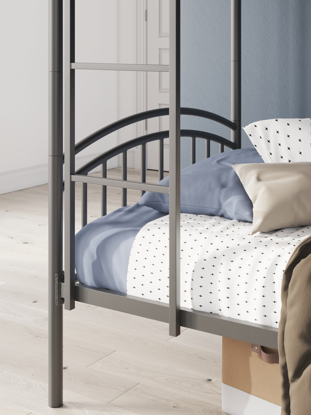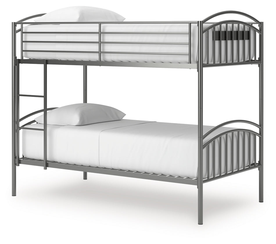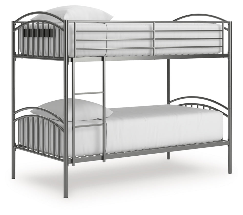 Save space and let little ones snooze in style. This bunk bed's steel gray finish pairs with a variety of colors and aesthetics. Its ladder position adjusts to the left or right side to suit a bedroom's layout. And the bed is adaptable to your family's changing needs, with the ability to convert from a bunk bed to two individual twin beds.