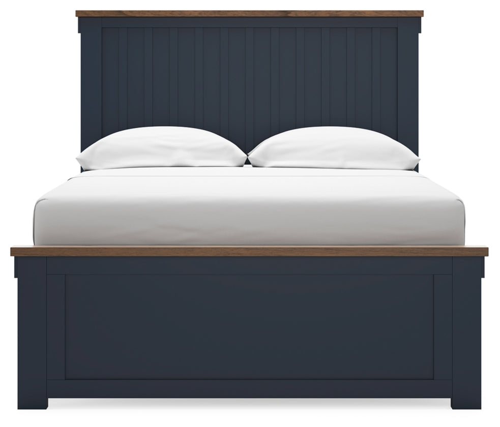 Add homespun charm to your restful retreat with this bedroom package. A modern take on timeless silhouettes, it pairs a dark slate blue finish with light brown tops. Drawer fronts and legs in a classic Shaker style bring an air of beautiful simplicity to the bedroom. Whether it's part of a charmingly curated guest suite or a casually carefree kids room, this set is a welcome addition.